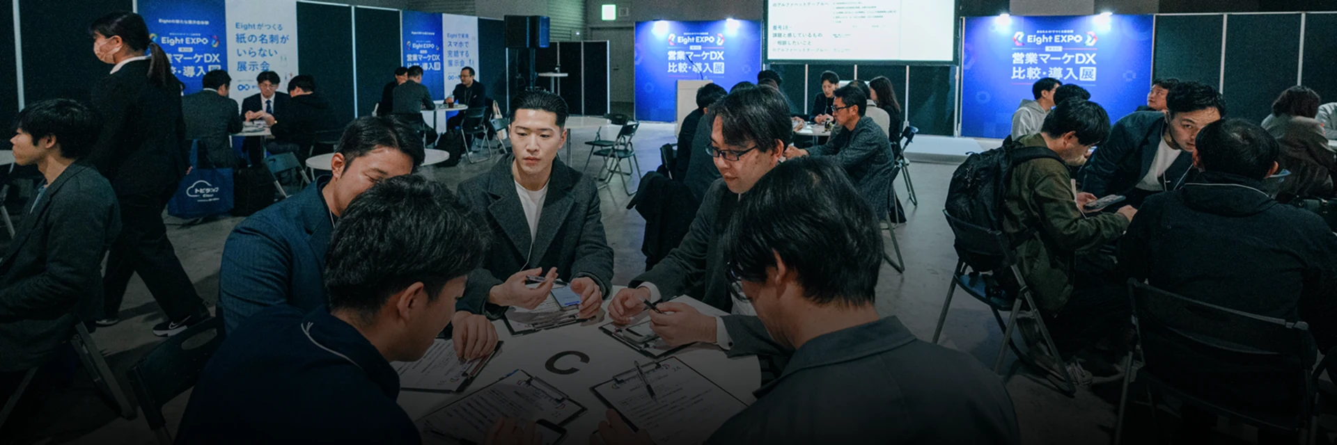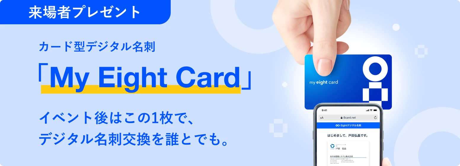 会場内ではEightのデジタル名刺で